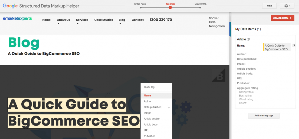 Thanks to Google’s Structured Data Markup Helper, all you need to do is manipulate some HTML code. Here’s what that looks like step-by-step: